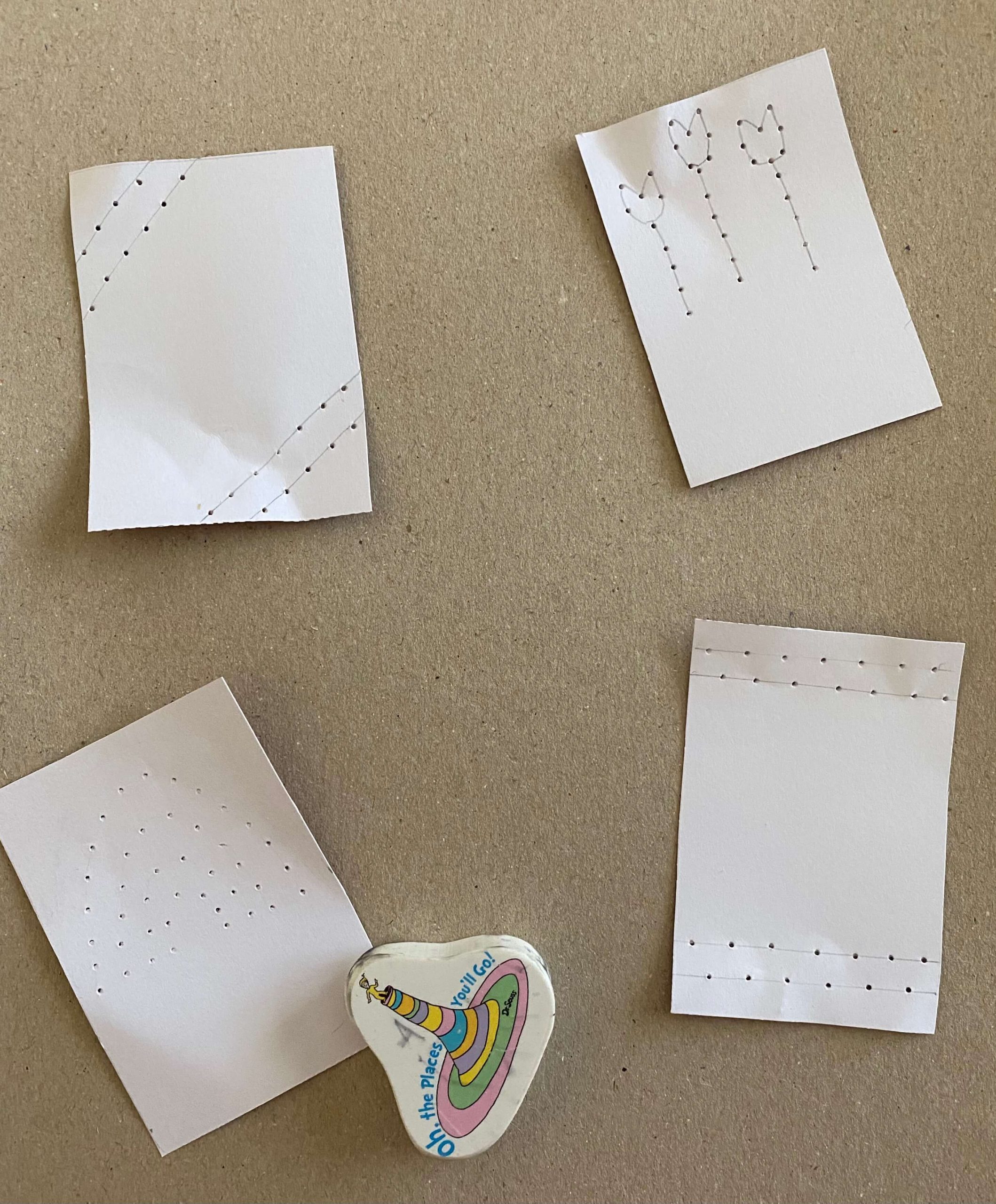 All you have to do now is punch holes on the four semi-circular corners. This does take a bit of hand strength! Even then you might end up using scissors to cut the small holes out.
